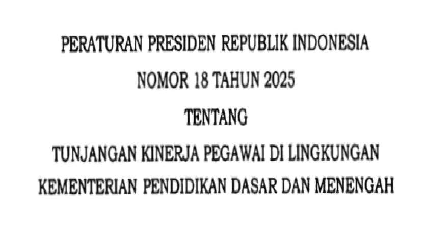 Peraturan Presiden Republik Indonesia Nomor 18 Tahun 2025 Tentang Tunjangan Kinerja Pegawai Di Lingkungan Kementerian Pendidikan Dasar Dan Menengah UNDUH DISINI