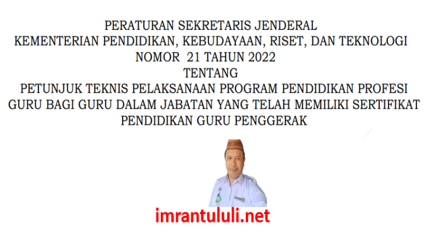 Peraturan Sekretais Jendral No. 21 Tahun 2022 tentang Juknis Pelaksanaan PPG bagi guru yang telah memiliki sertifikat Guru Penggerak